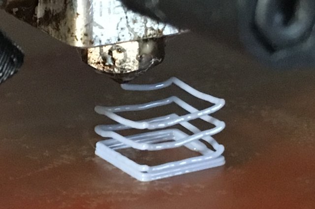 Many plastics also ooze differently as the feedrate and temperature change, so once the midair section is started (or even slightly before), keep things steady.