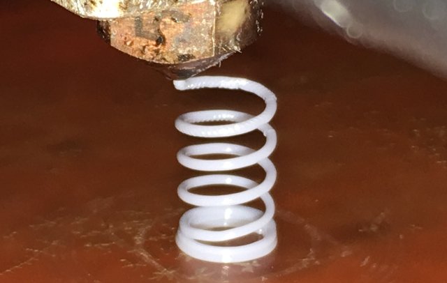 This means that the G-code for a cylindrical coil spring actually flares out slightly near the top to produce a spring that is straight when completed.